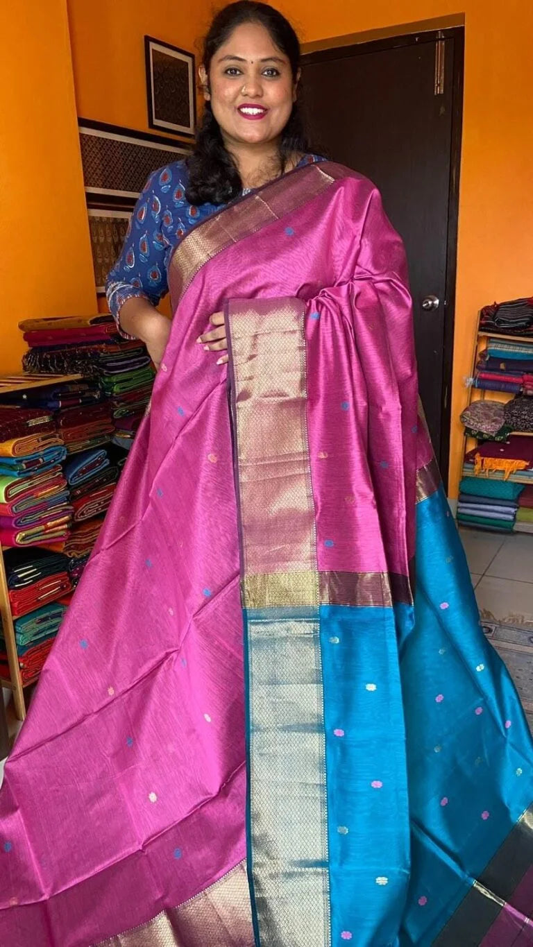 Maheshwari Silk Cotton Sarees 05-11-MSC-10-05 Pink with Blue