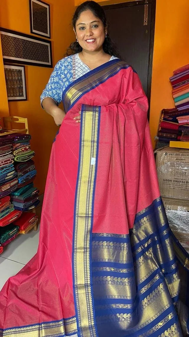 ( Note: 1 meter of contrast or same colour plain blouse in cotton silk will be paired according to availability )