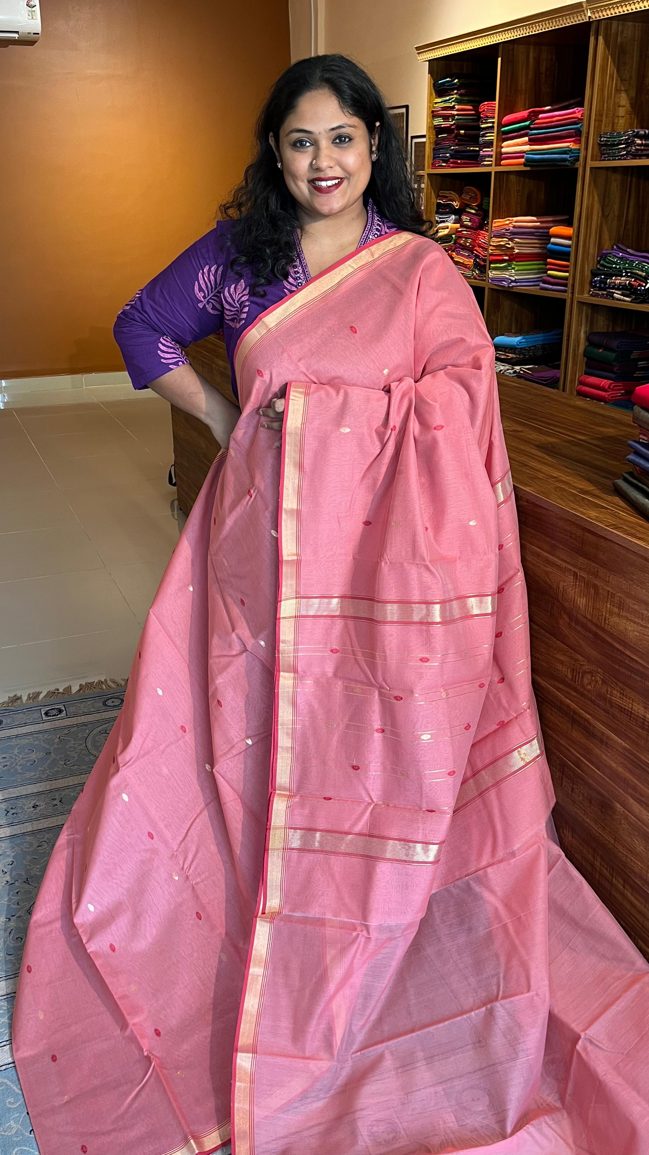 ( Note: 1 meter of contrast or same colour plain blouse in cotton silk will be paired according to availability )