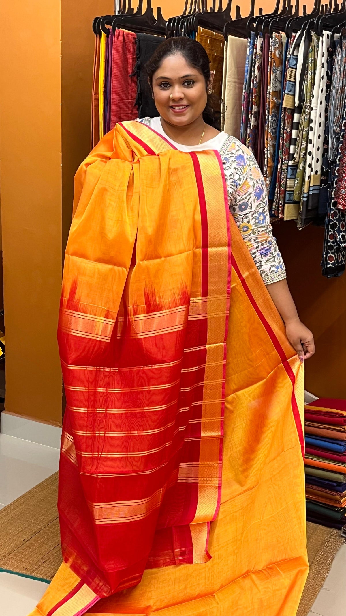 Sunset Orange Kuyil Kan Border Devendra Madisar - 12-11-10-10.5Y-04
