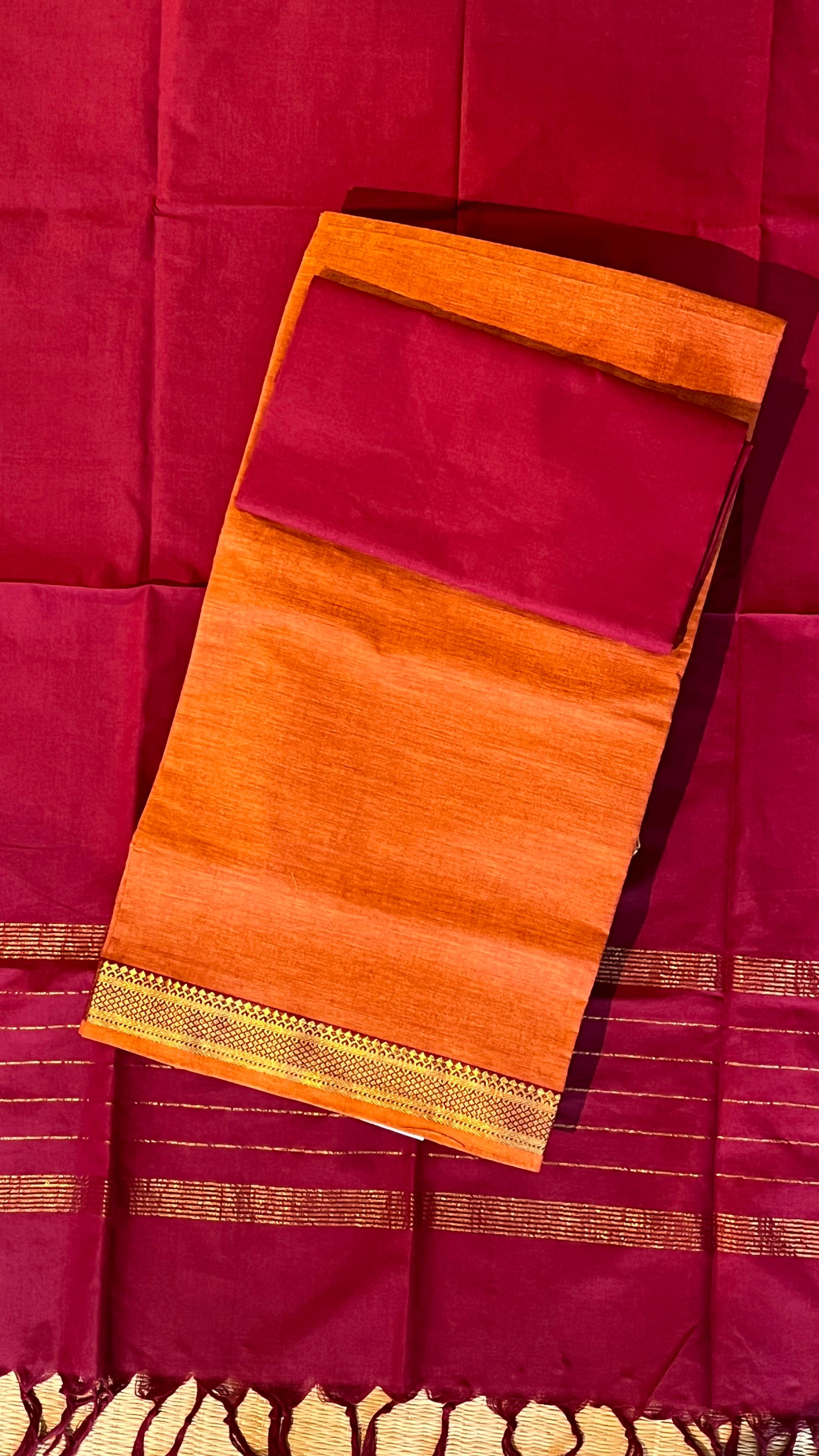 ( Note: 1 meter of contrast or same colour plain blouse in cotton silk will be paired according to availability )