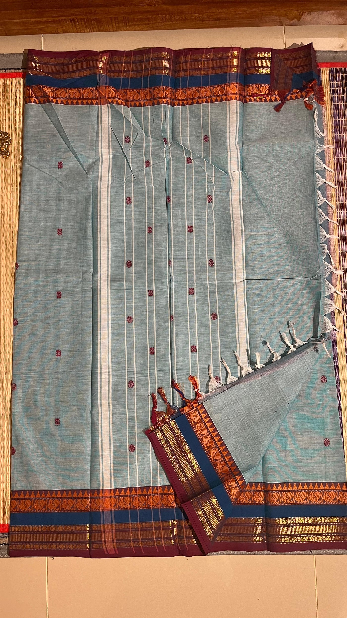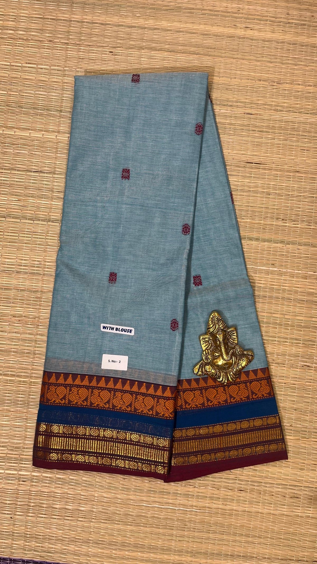 Kanchi Cotton Saree - 01-09B-02-30 (Powder Blue)