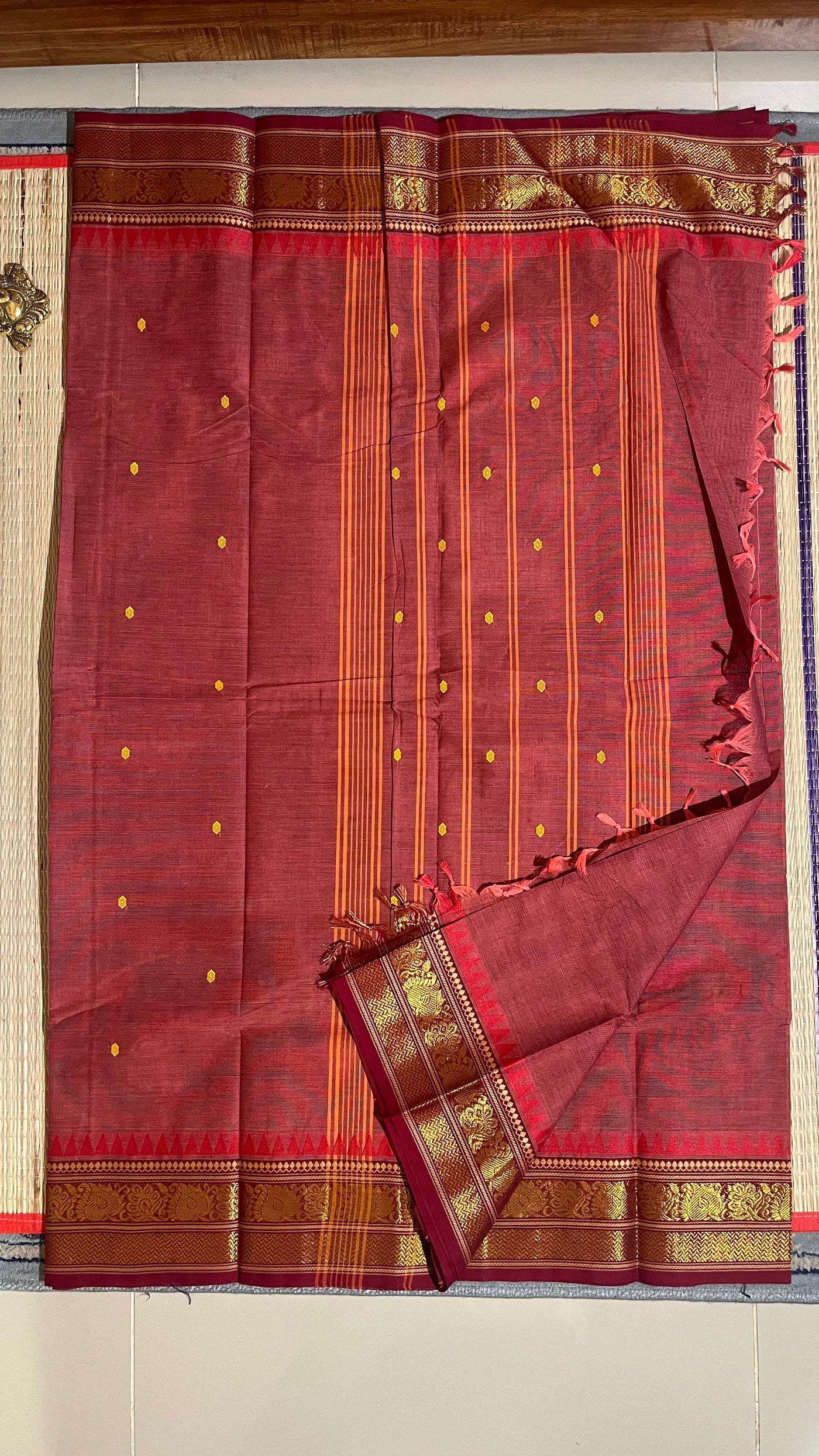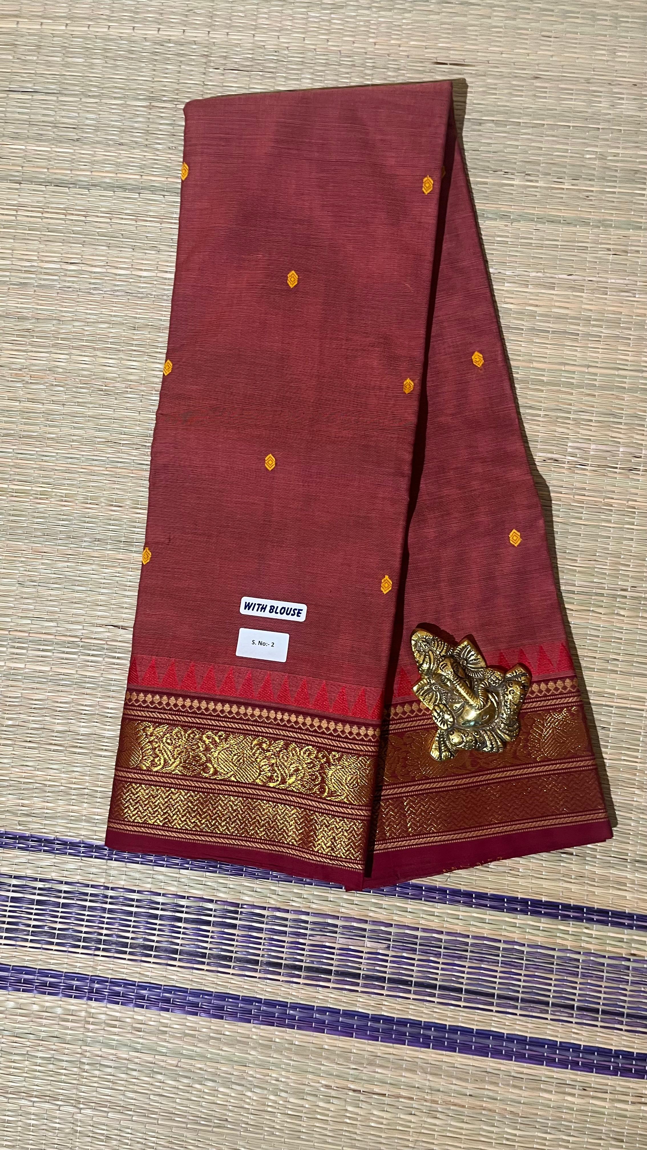 Kanchi Cotton Saree - 01-09B-02-37 (Rust Pink)