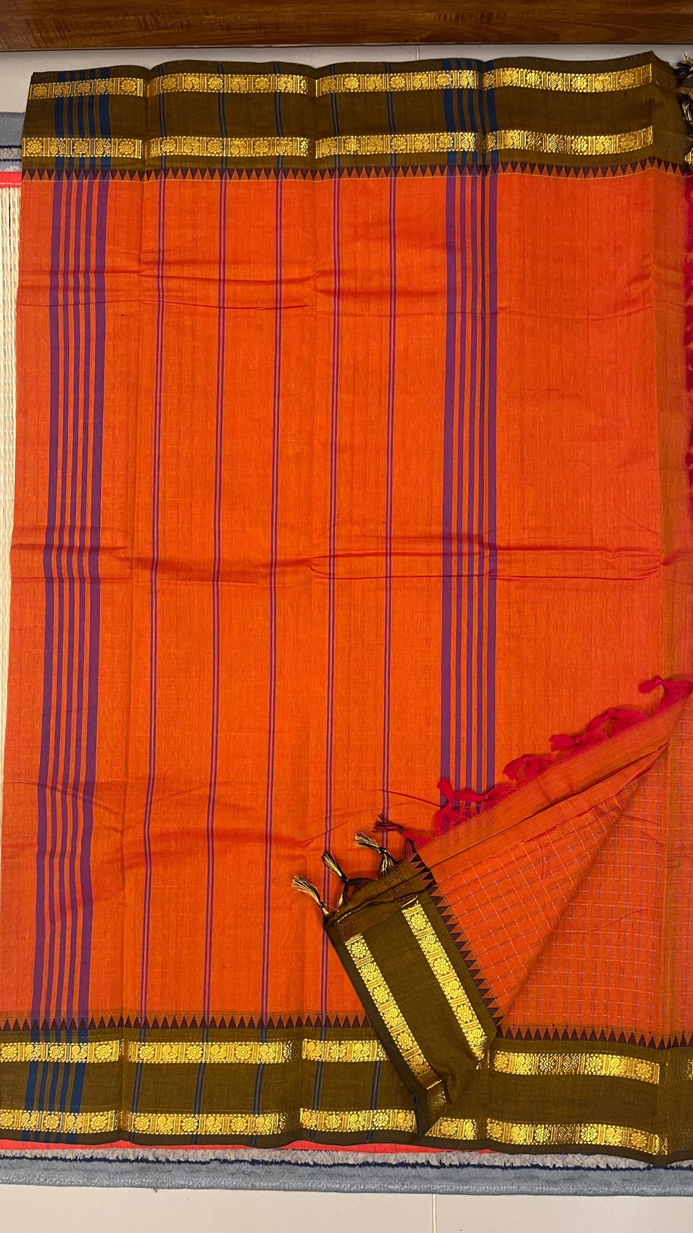 Kanchi cotton saree - 01-09B-03-16 (Orange)