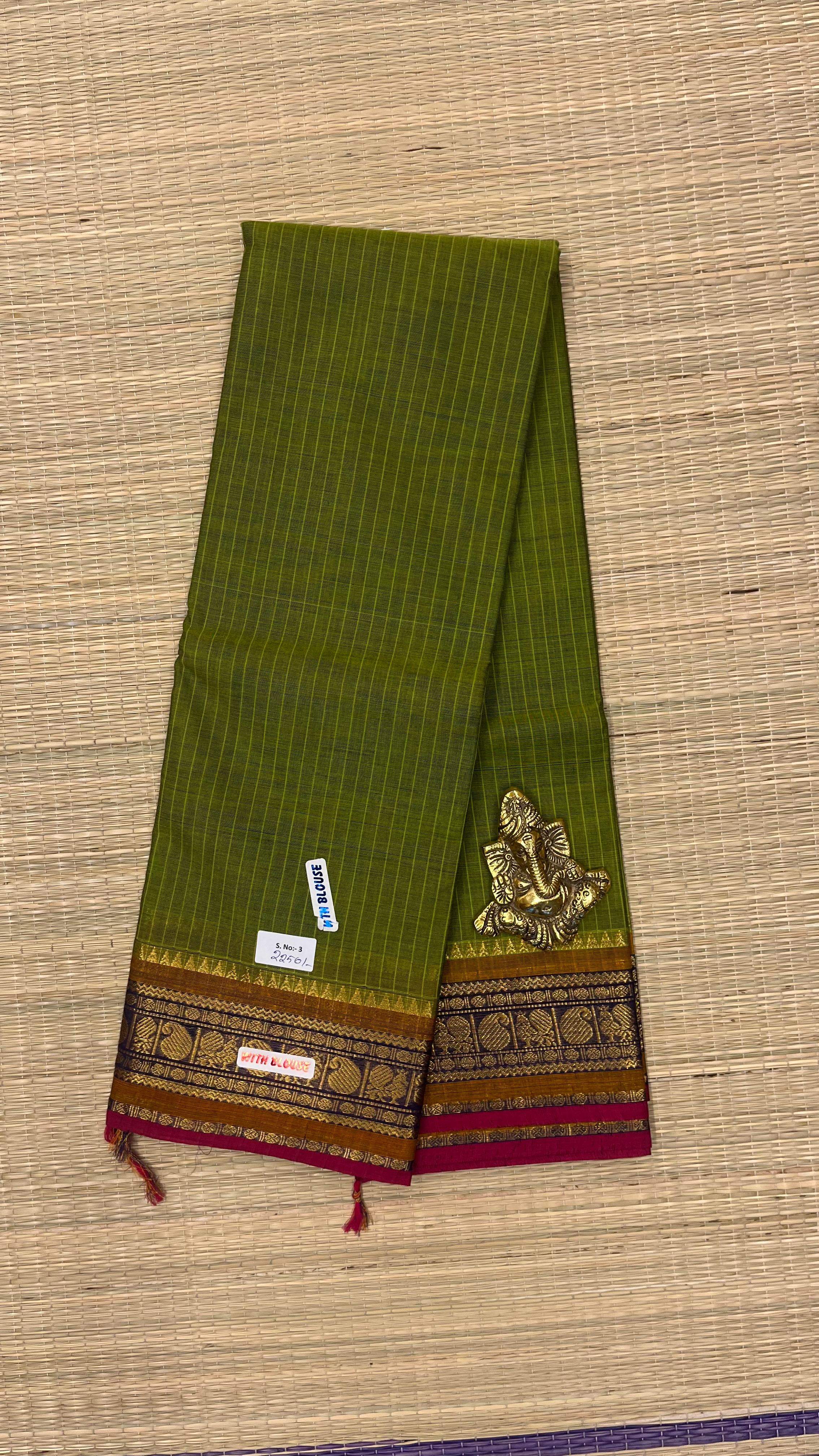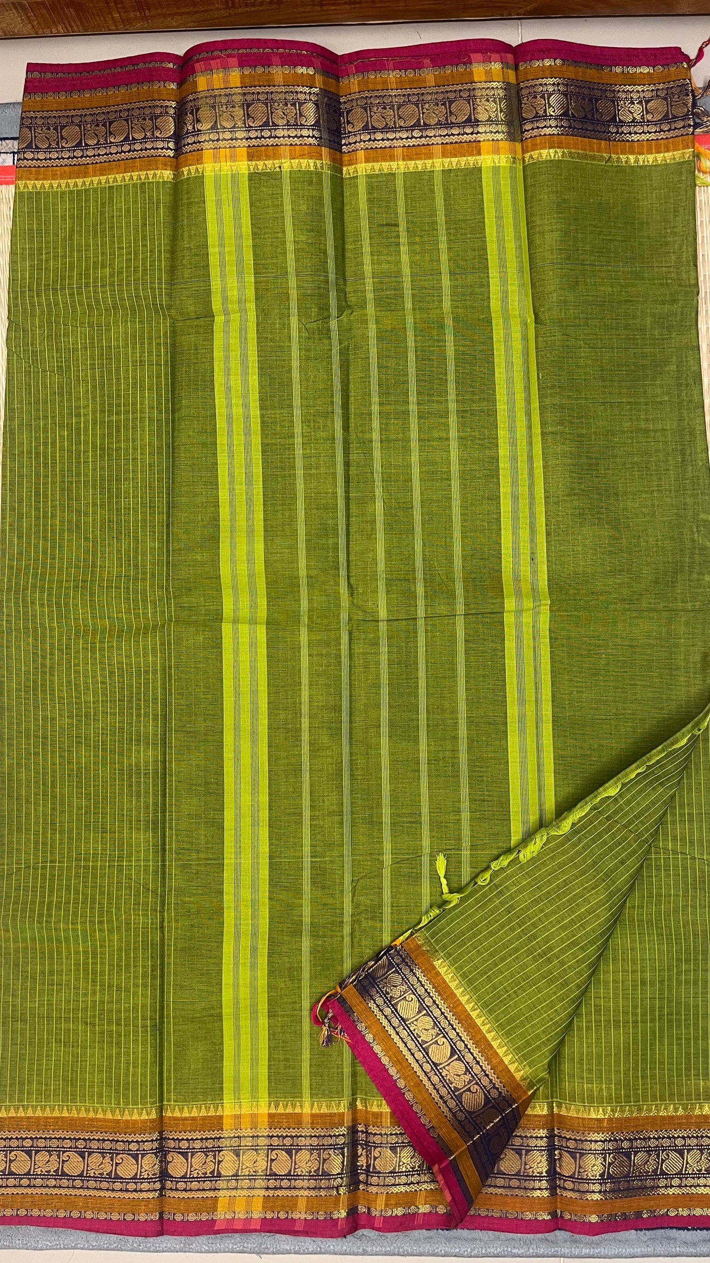 Kanchi cotton saree - 01-09B-03-23 (Parrot green)