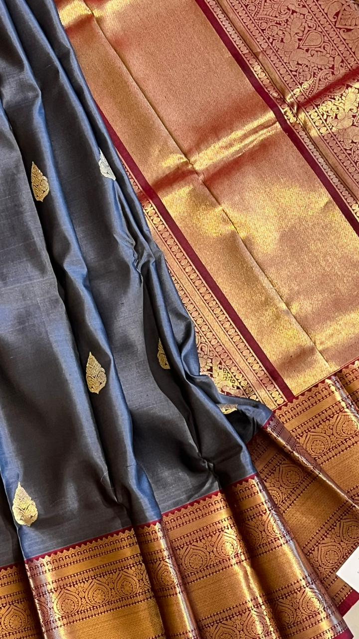 Pure Silk Kancheevaram Saree - 01-10-15-PSC-02 (Grey with Maroon)