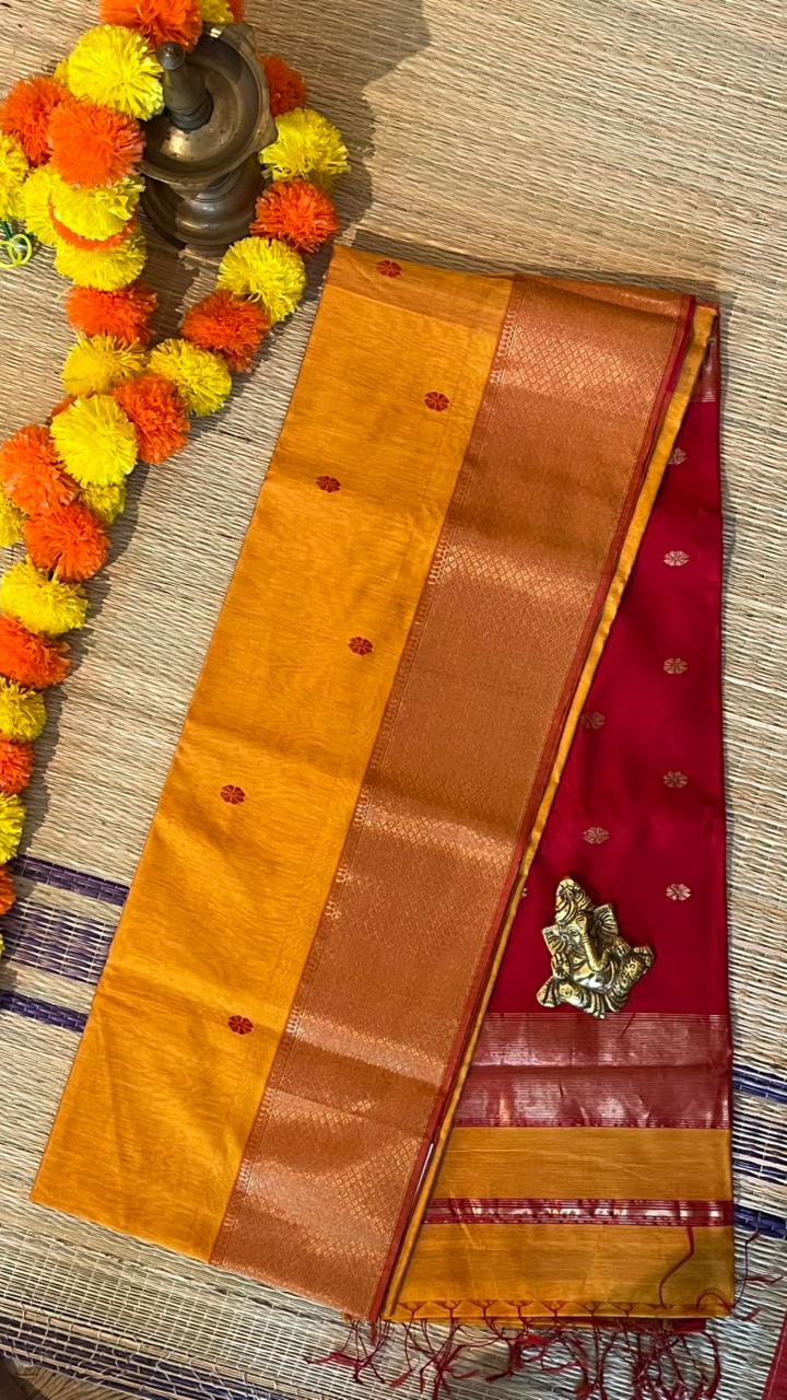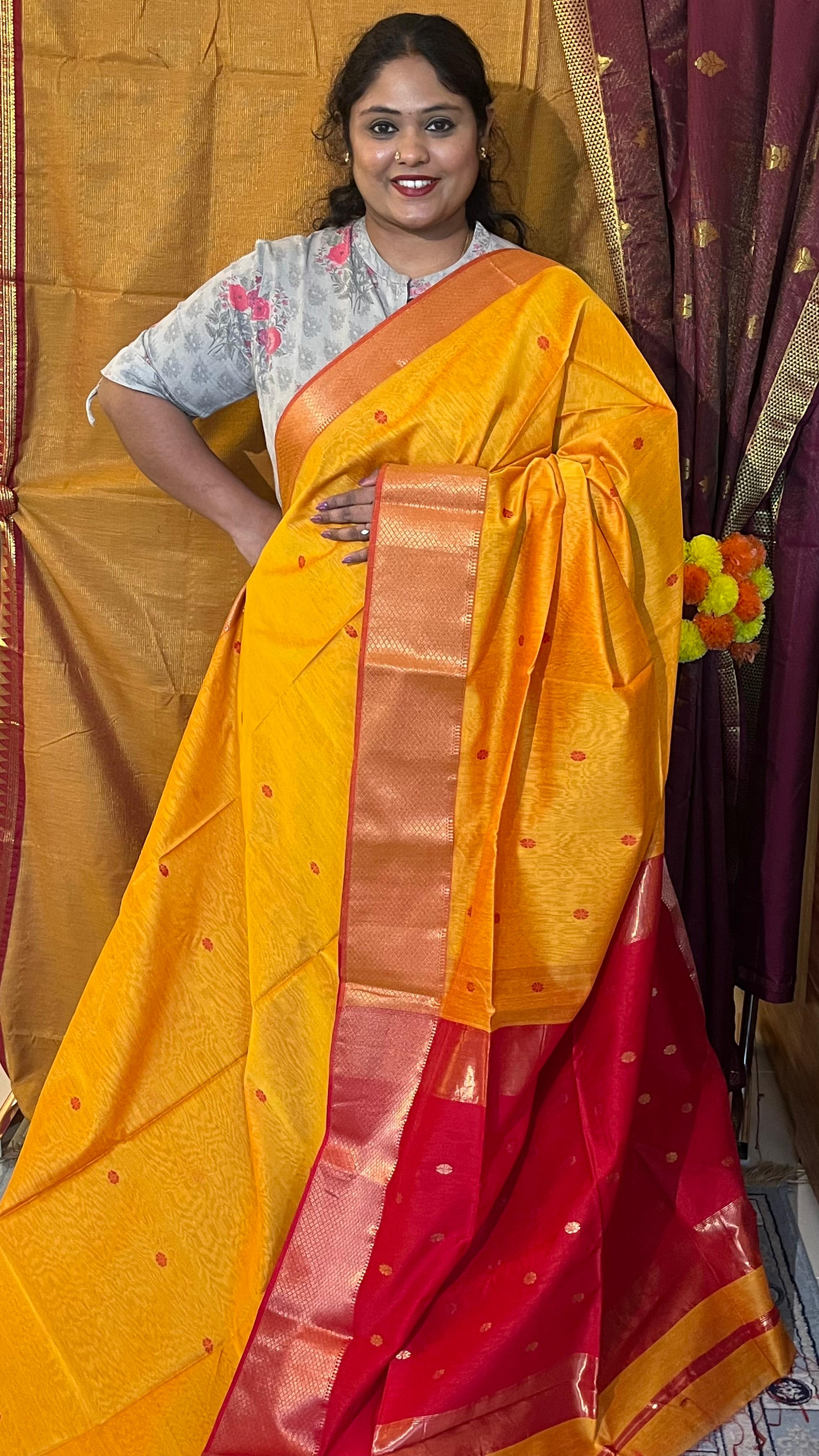 Maheshwari silk cotton big border saree - 05-10-02-10 (Yellow with red)