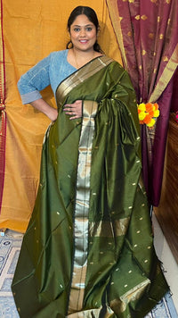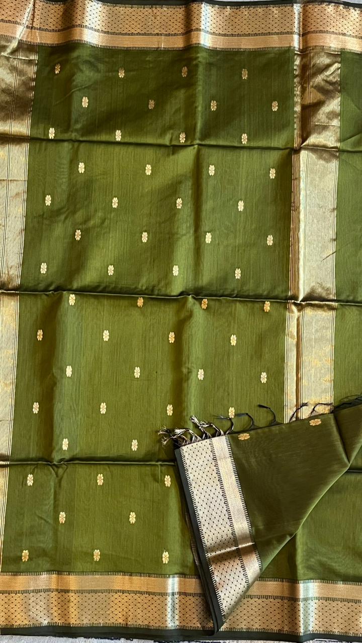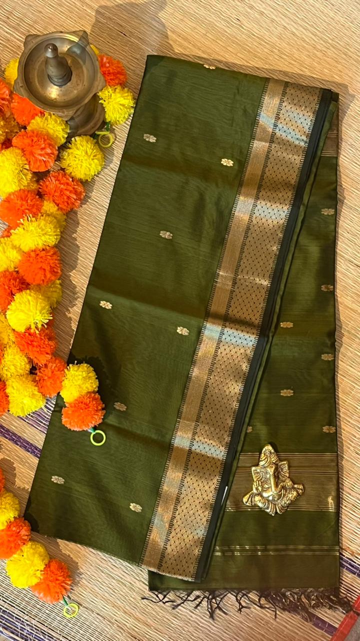 Maheshwari silk cotton saree - 05-10B-02-01 (Leaf Green)