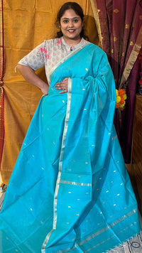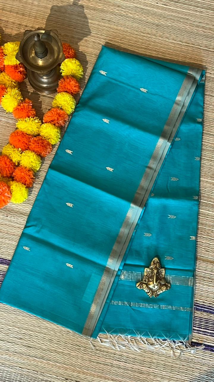 Maheshwari silk cotton small border saree - 05-10B-01-09 (Blue)