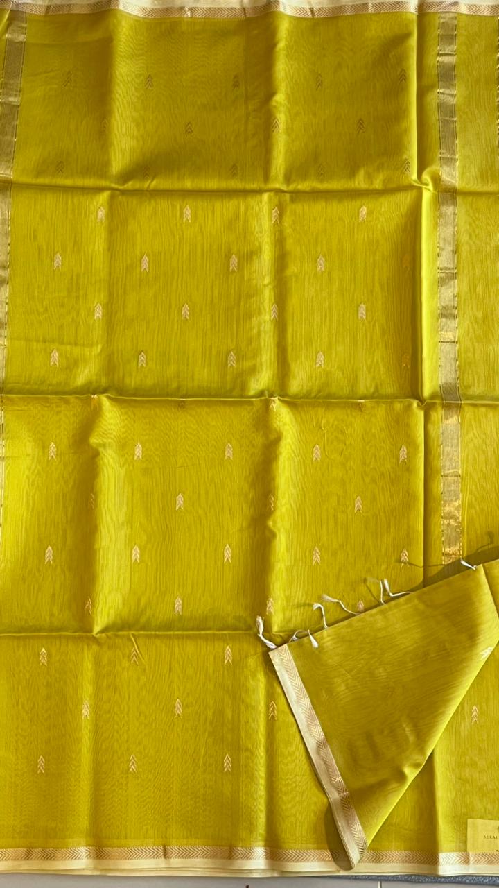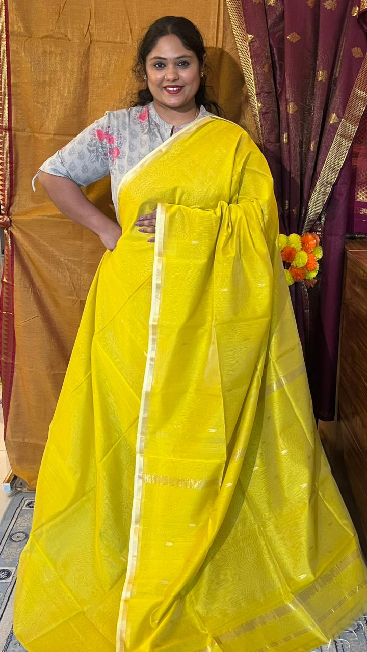 Maheshwari silk cotton small border saree - 05-10B-01-10 (Lemon yellow)