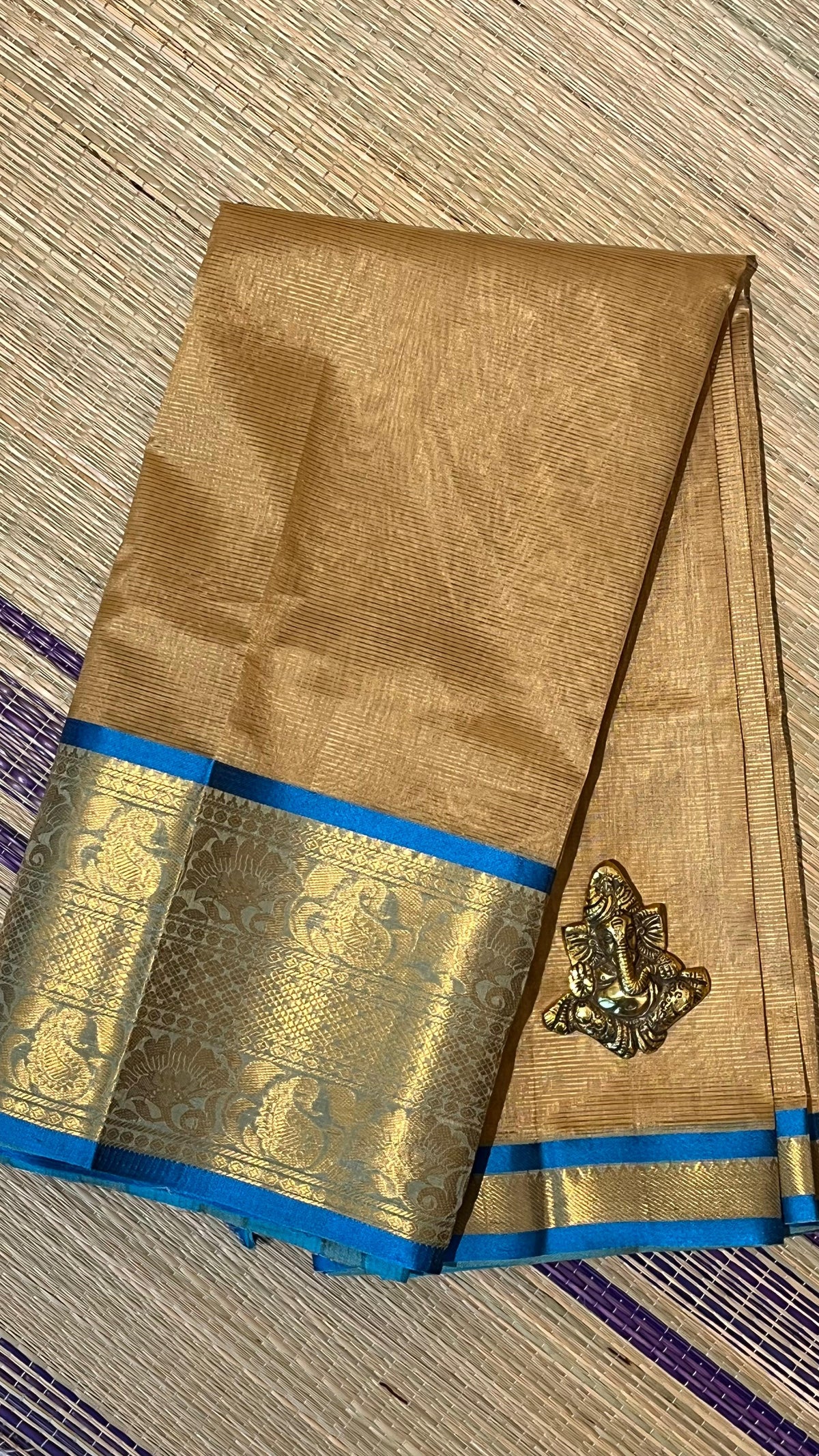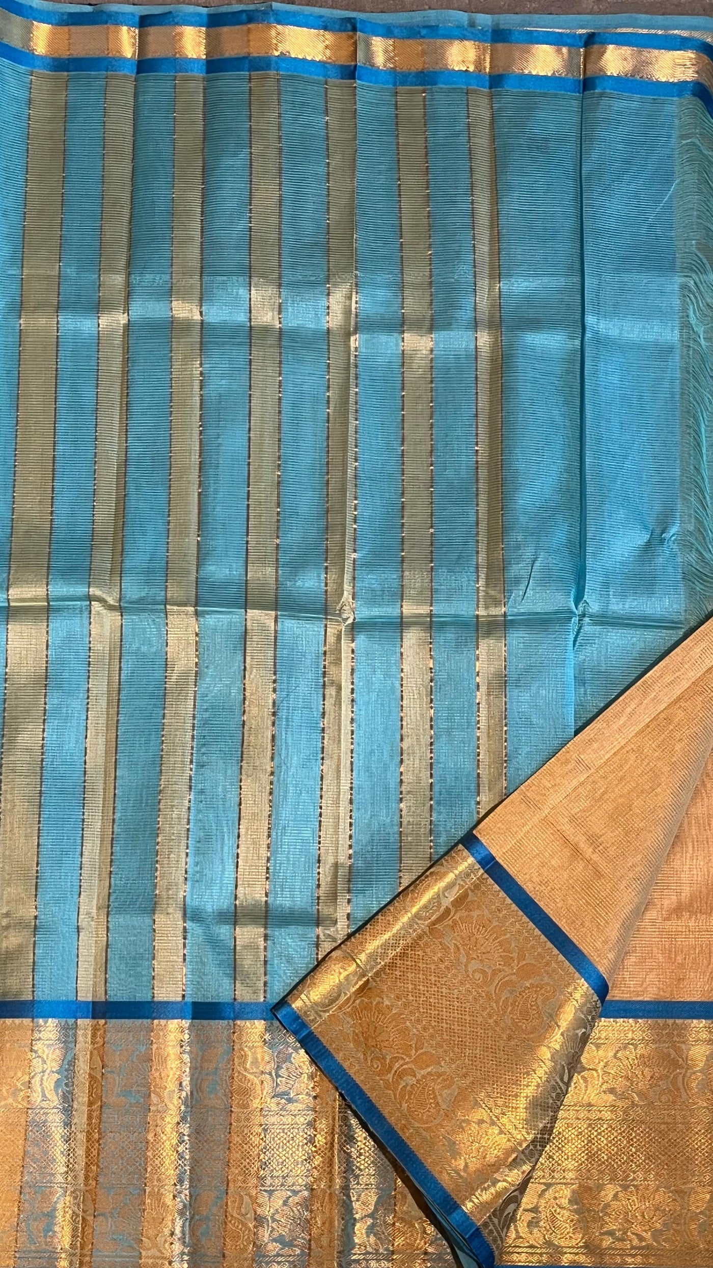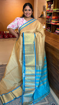 Mangalagiri Silk Cotton Kanchi Border Saree - 15-08B-06-03 (Tussar Sandal with Blue)