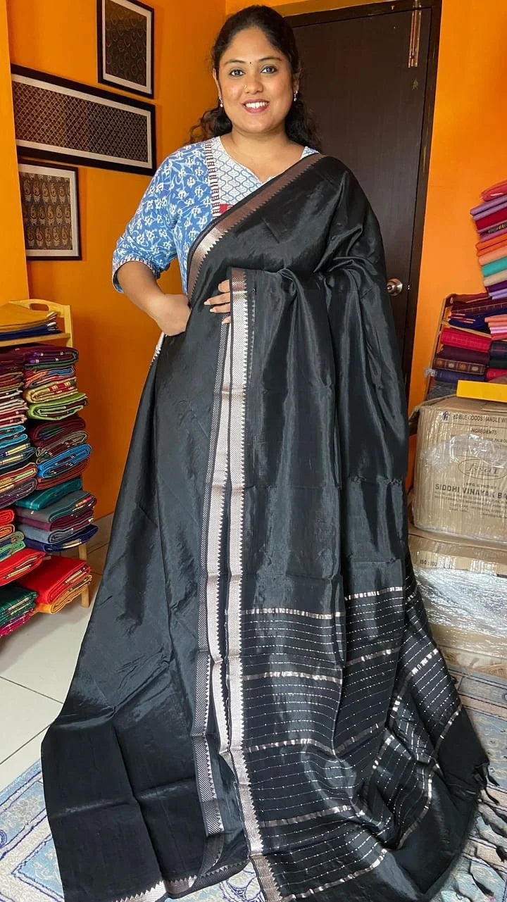 Mangalagiri Silk Cotton Saree 15-10-NB-03 – Black
