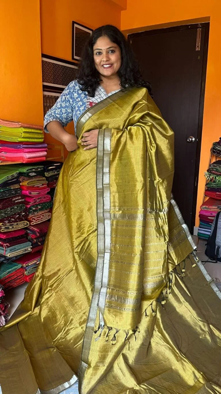 Mangalagiri Small Border Saree 15-01-SB-05 – Mehandi Green