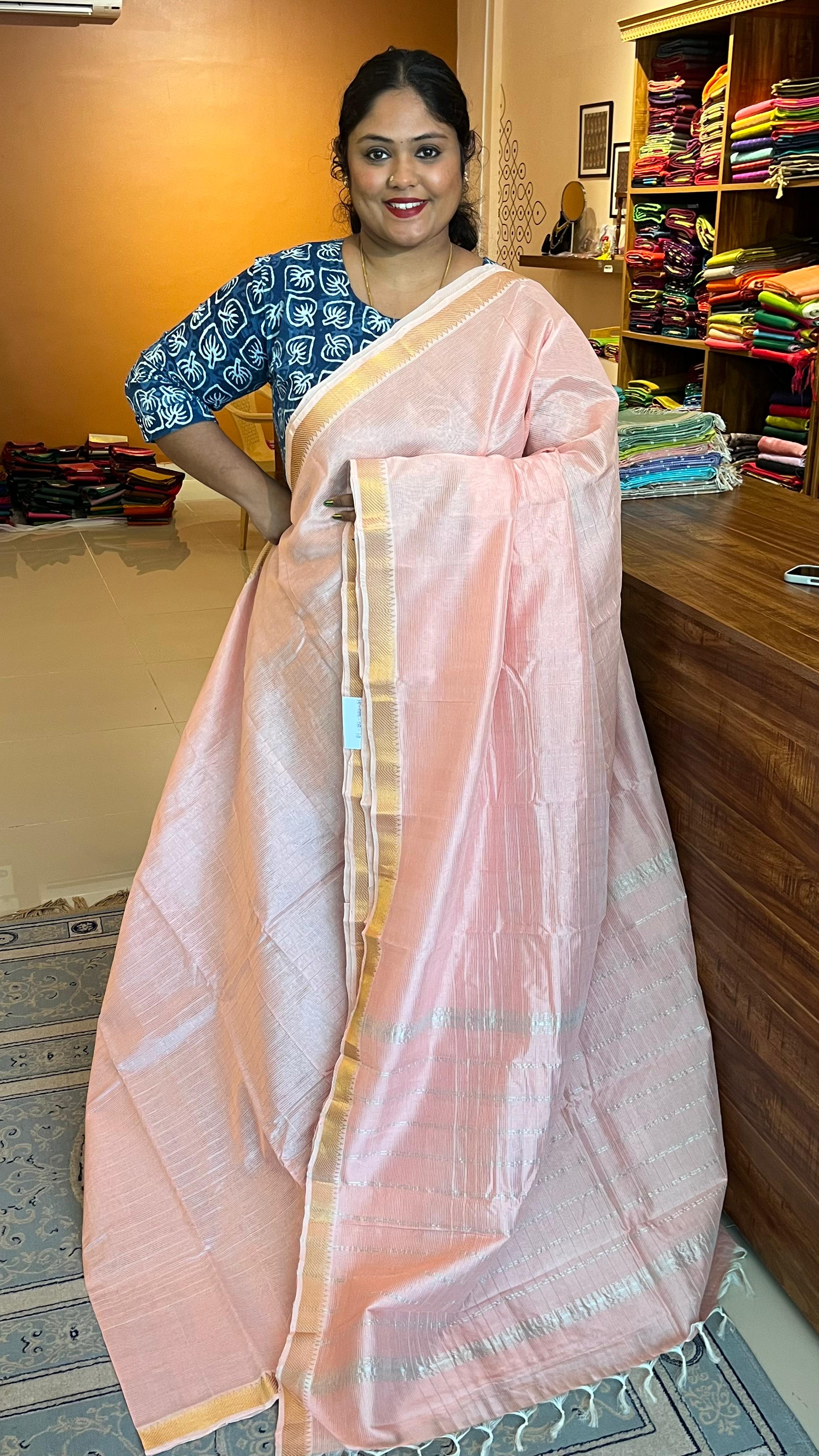 Mangalgiri silk cotton small border kattam saree -15-08B-02-12 (Light Pink)
