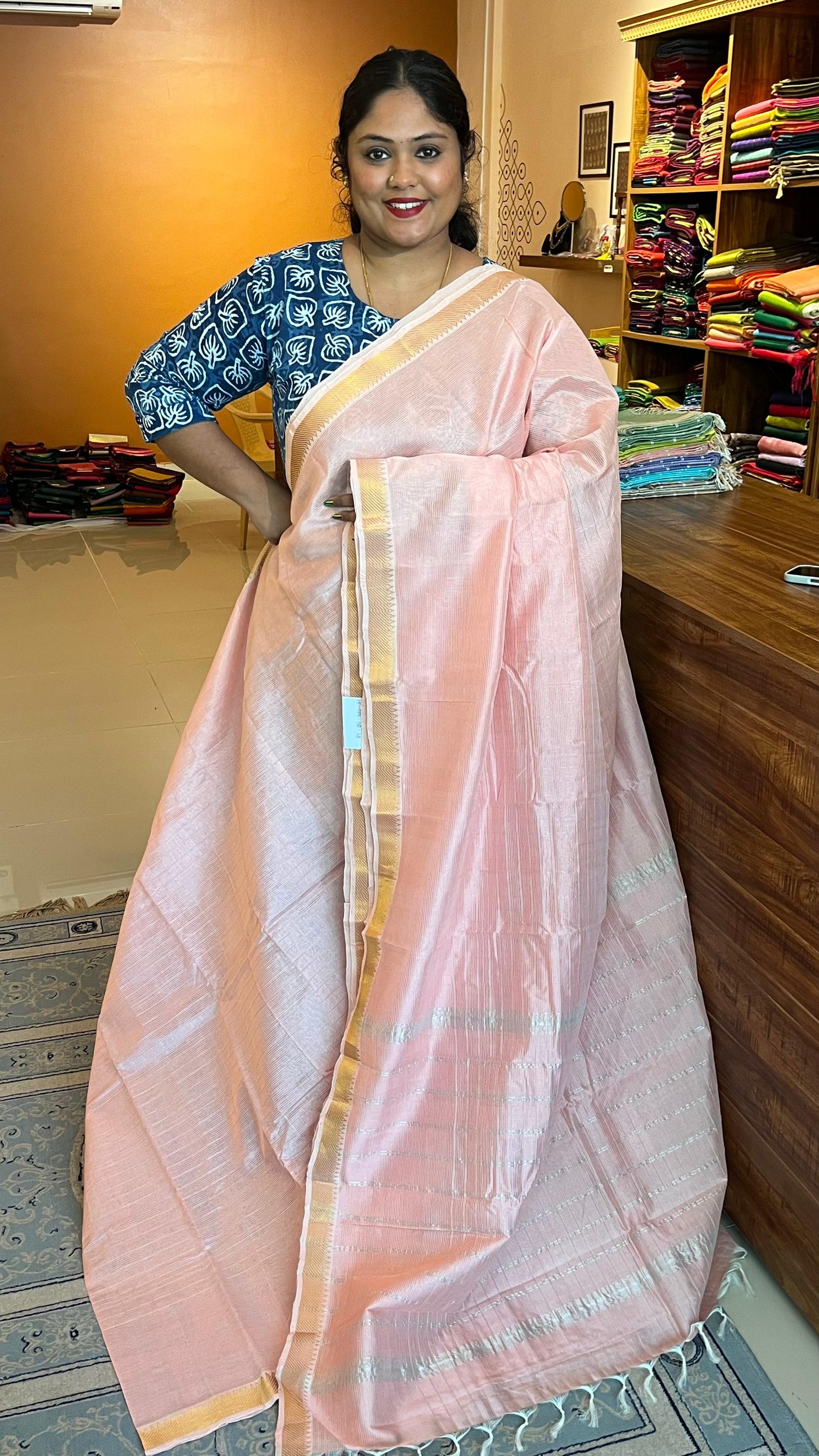 ( Note: 1 meter of contrast or same colour plain blouse in cotton silk will be paired according to availability )