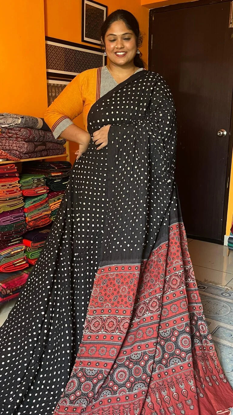 Ajrakh Cotton Saree 46-02-AC-17 Black