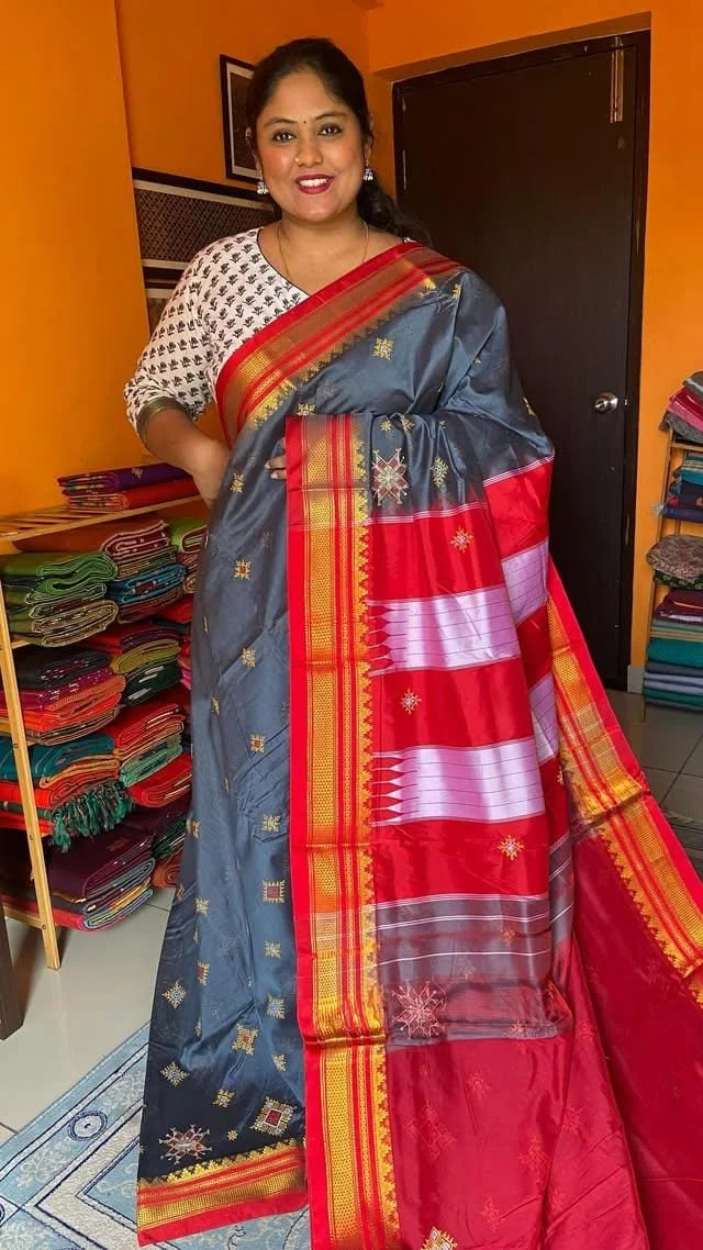 Kasuti Ilkal Saree 44-11-KT-03 – Elephant Grey