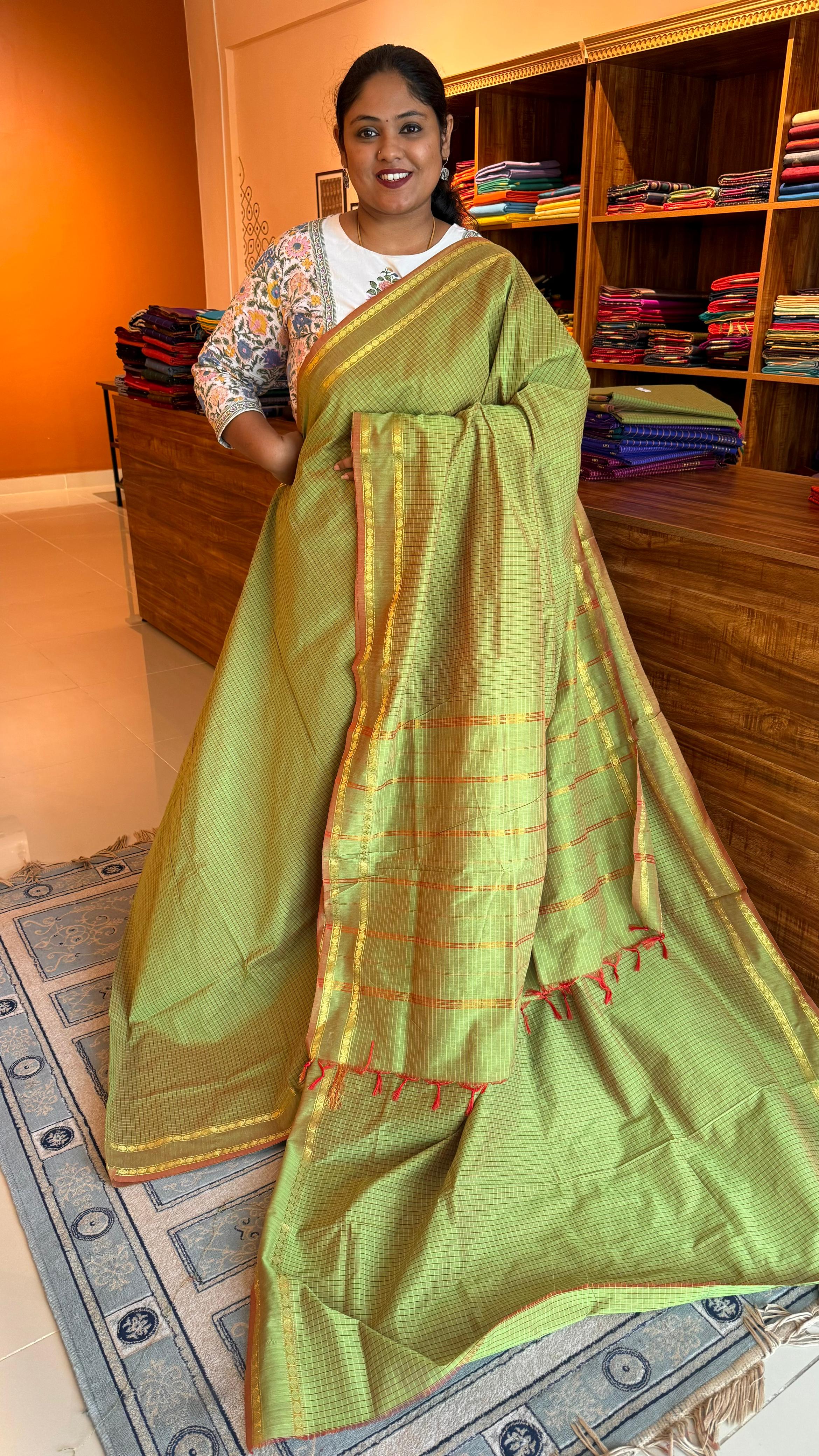 Semi-Silk Cotton Kattam Rudraksham Pettu - 01-03-12-PCS-03 (Light Green)