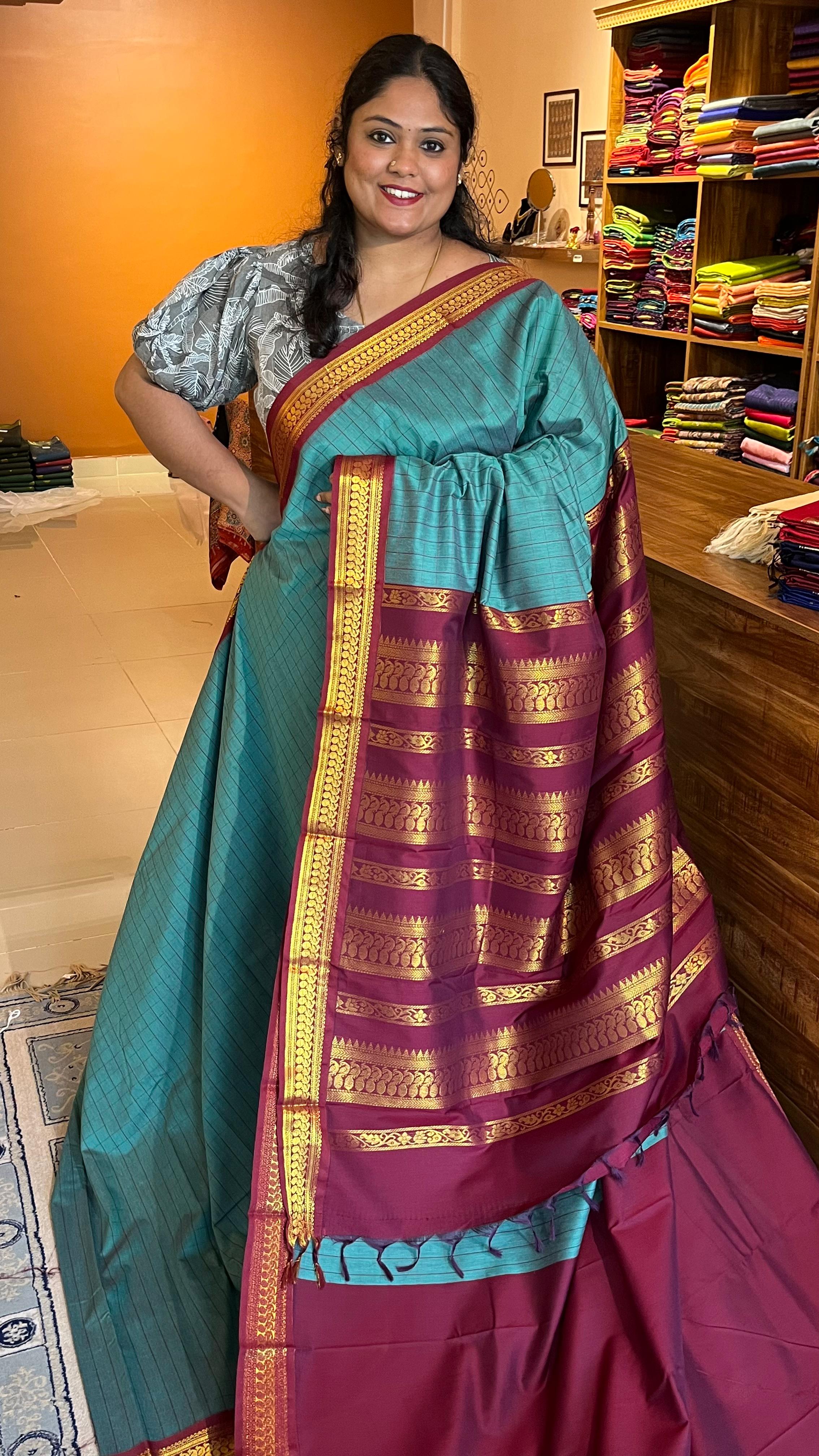 Semi Silk Kattam saree - 01-08B-03-13 (Bluish Green)
