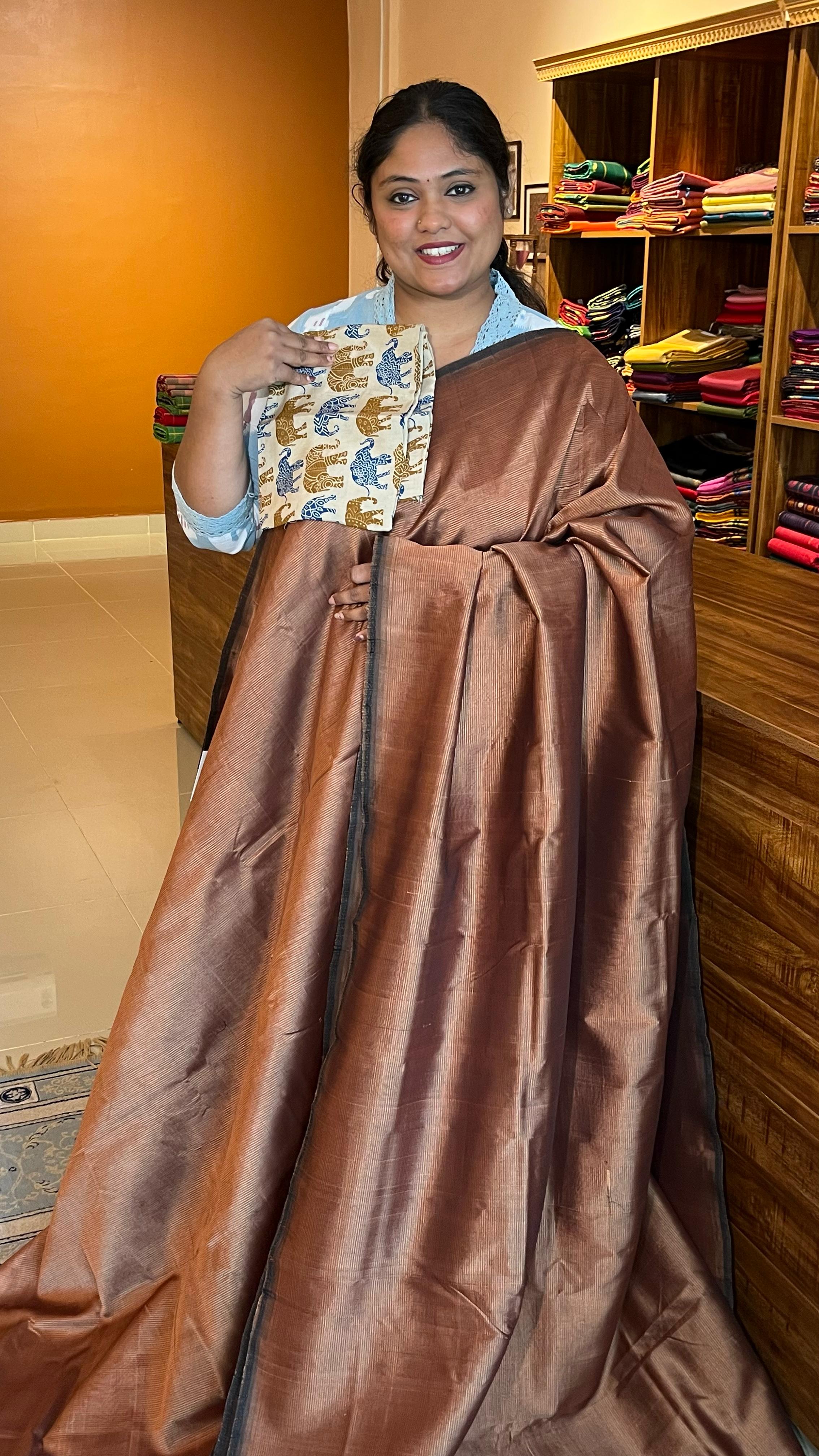 Mangalgiri Silk Cotton with Blouse - 15-04-MP-04 (Brown)