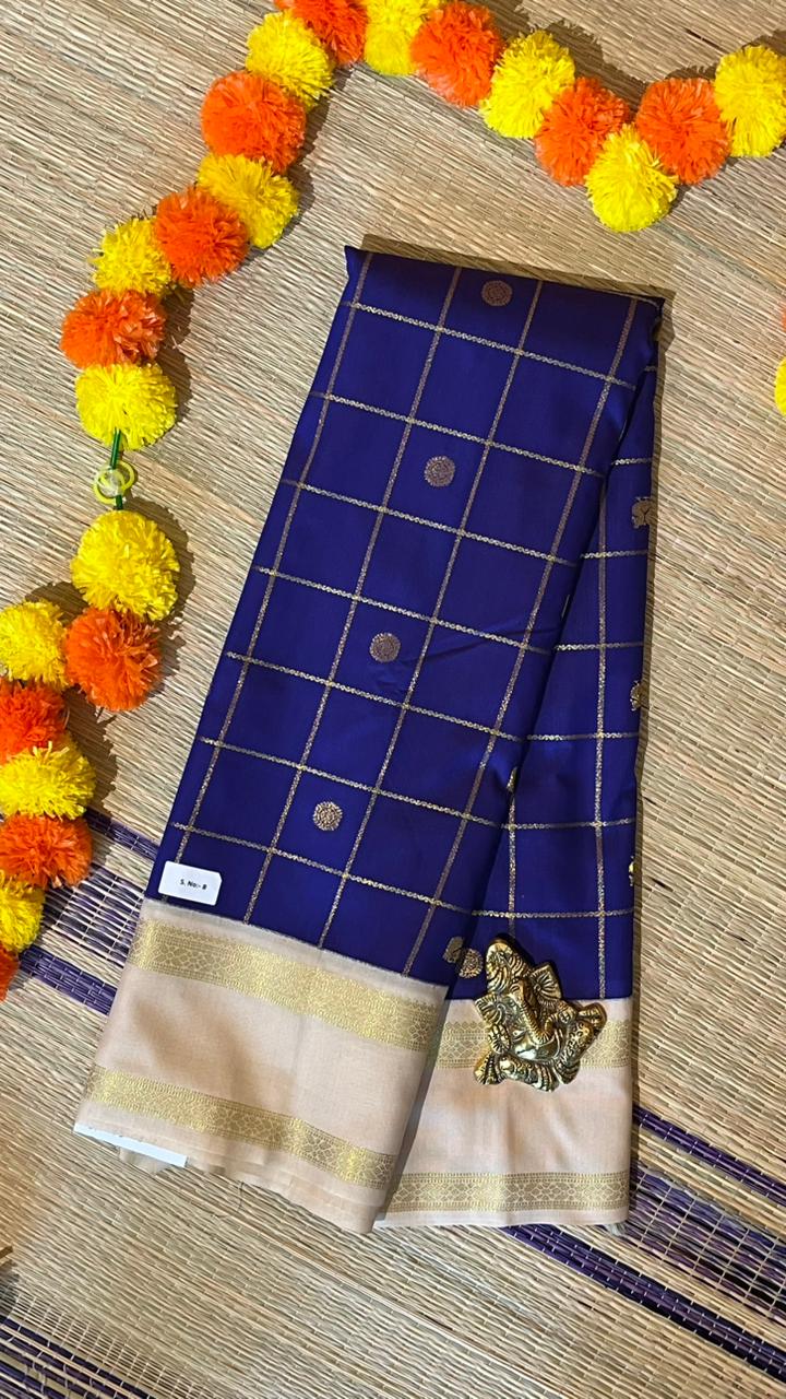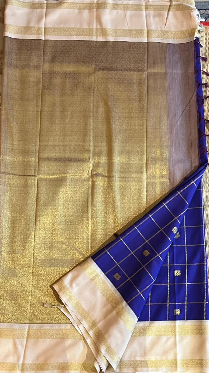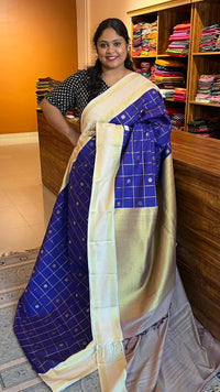 Semil Silk Kattam Saree - 01-09B-08-21 (Royal blue with white)