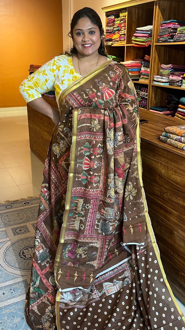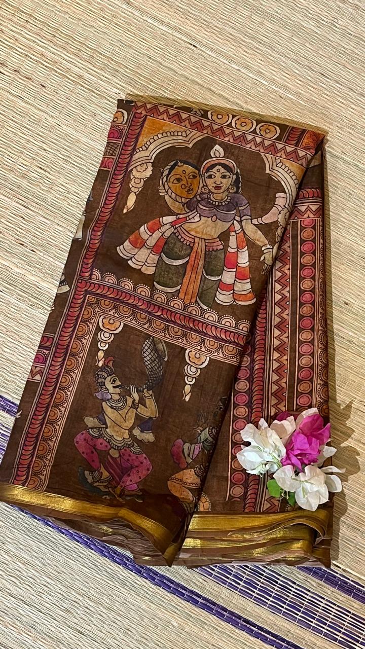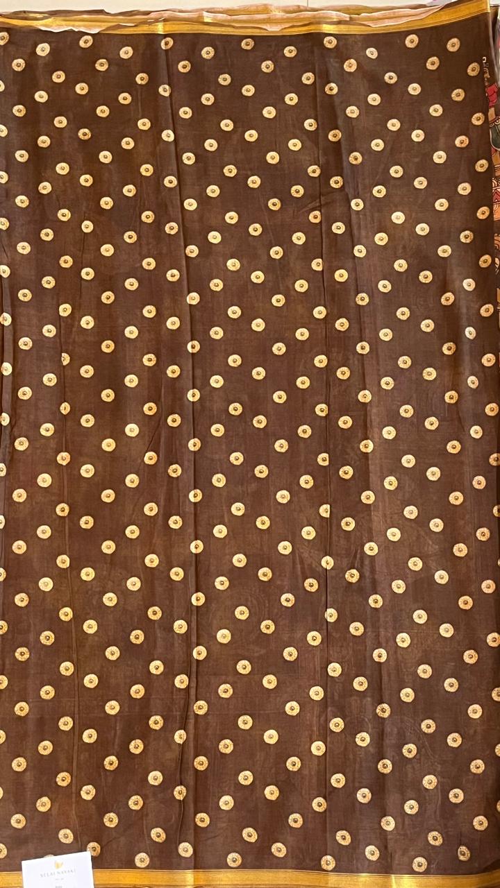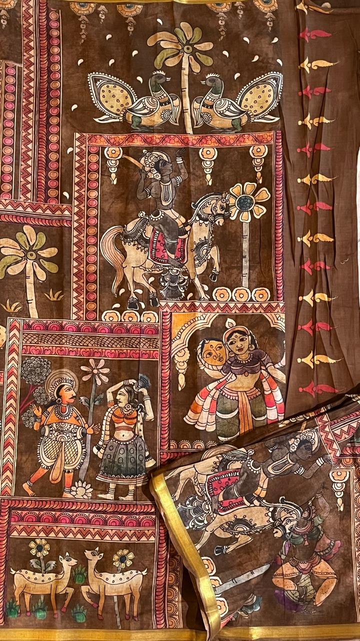 Chennuri Silk With Kalamkari Saree - 15-09-01-10 Dark Brown with Olive green