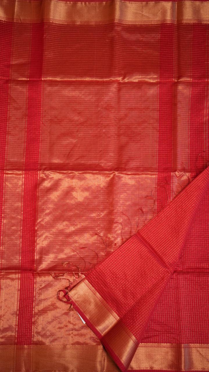 Maheshwari Silk Cotton Kattam Saree - 05-01-01-15 (Red)