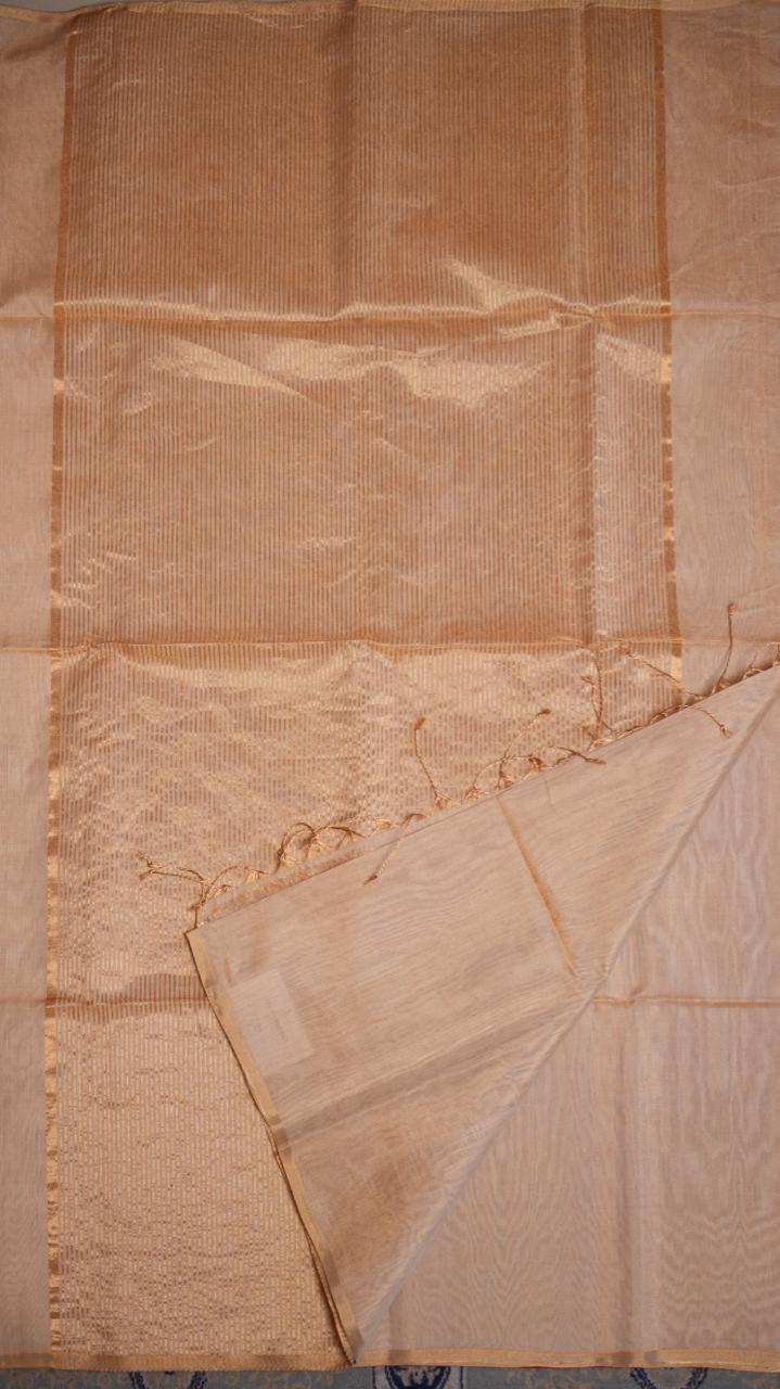 Maheshwari Silk Cotton Plain Tissue Saree - 05-2B-01-20 (BIRCH BARK)