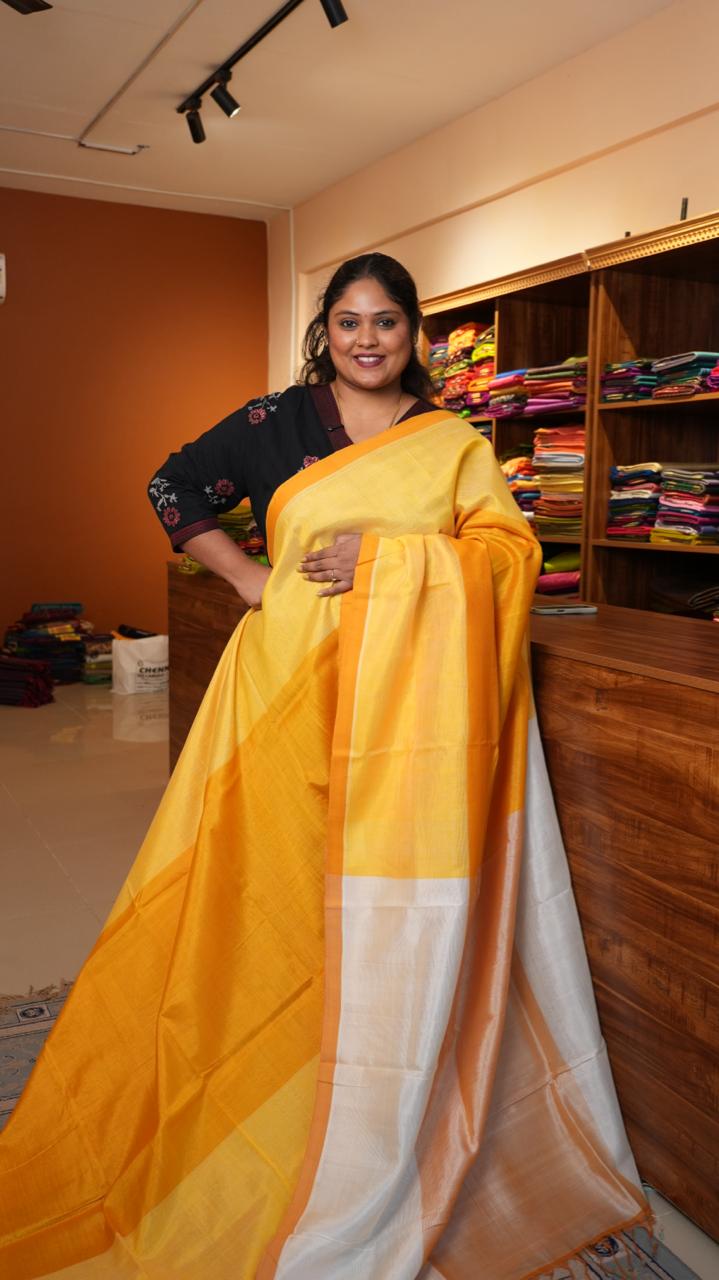 Mangalagiri Plain Silk Cotton Saree - 15-02-01-07 (GOLDEN PROSE)