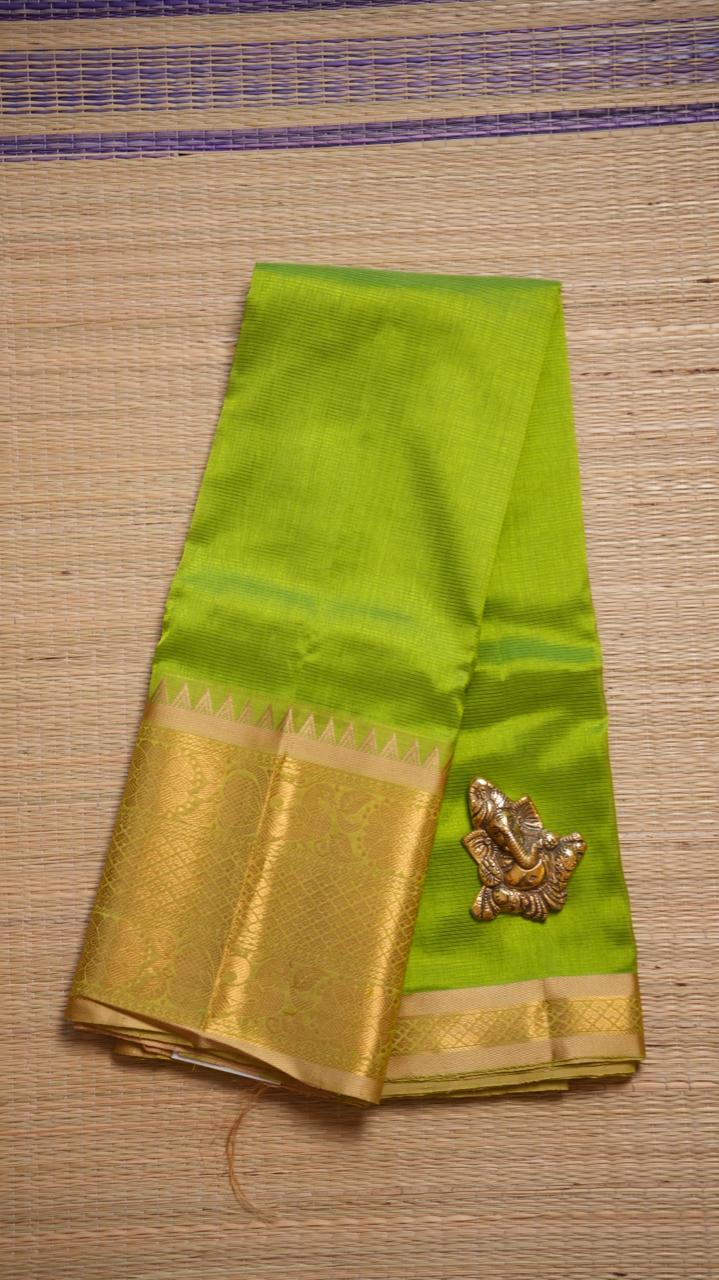 Mangalagiri Silk Cotton Kanchi Border Saree - 15-01-05-03 (PARROT GREEN AND PALE GOLD )