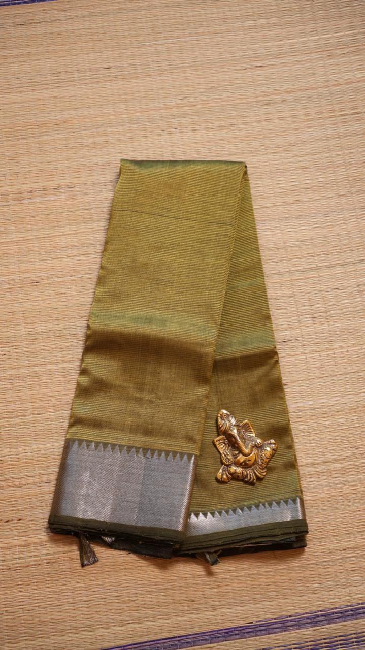 Mangalagiri Silk Cotton Saree 15-03-01-05 (OLIVE INK)