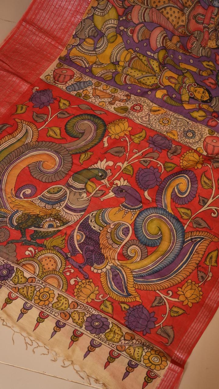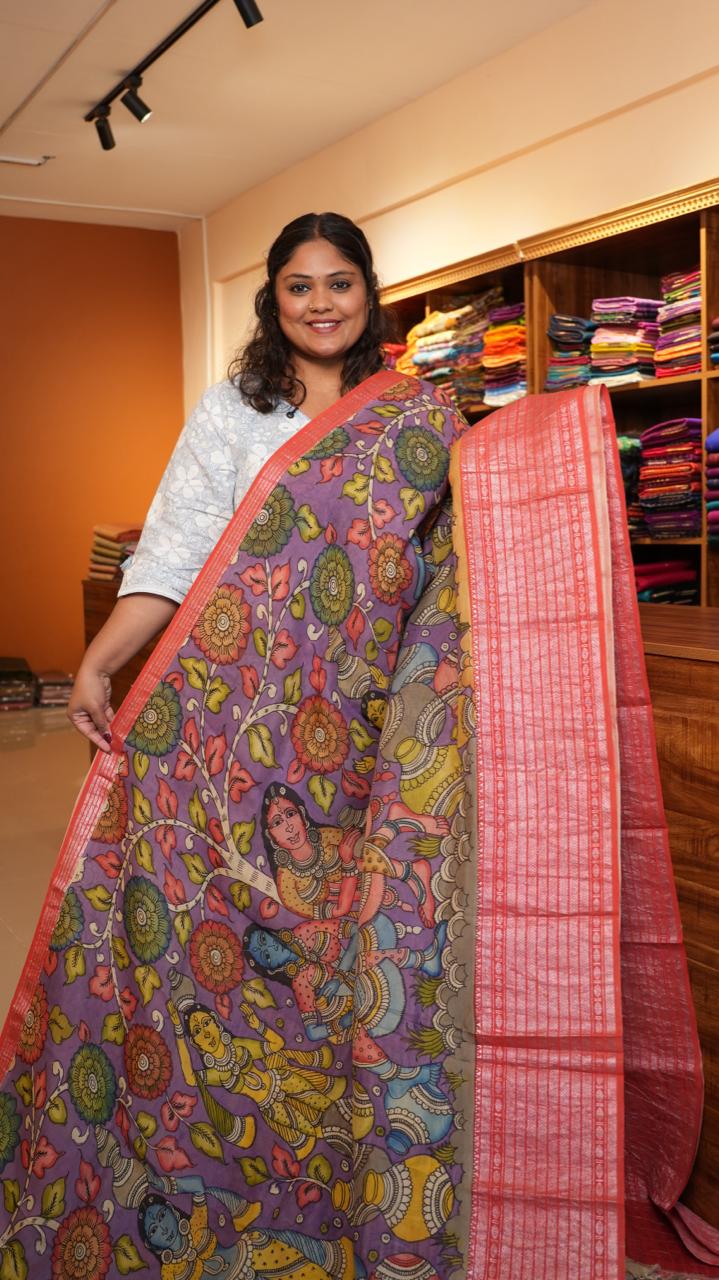 Pen Kalamkari Hand Painted Saree - 02-01-01-03 (Vibrant Purple)